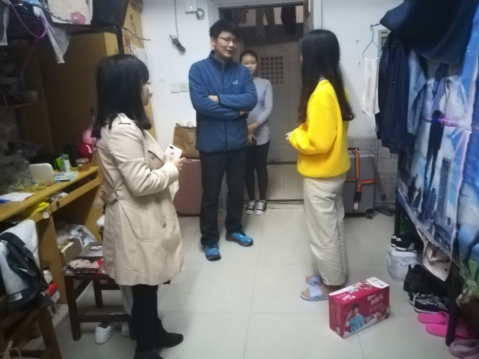 10月23日晚,外国语系学生党总支书记陈启金、全体辅导员及系宿管委员会学生干部一行前往寝室走访慰问学生。陈书记亲切走访部分学生寝室和看望近期生病学生,深入了解了学生的学习情况、寝室卫生。