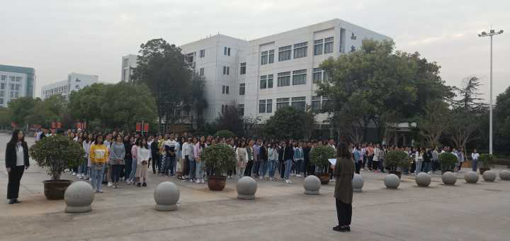 为了提高当代大学生的爱国意识,增强大学生的社会责任感,2018年10月8日yl7703永利集团外国语2017、2018级全体学生,于学校正门口举行了新学期第一次升旗仪式。