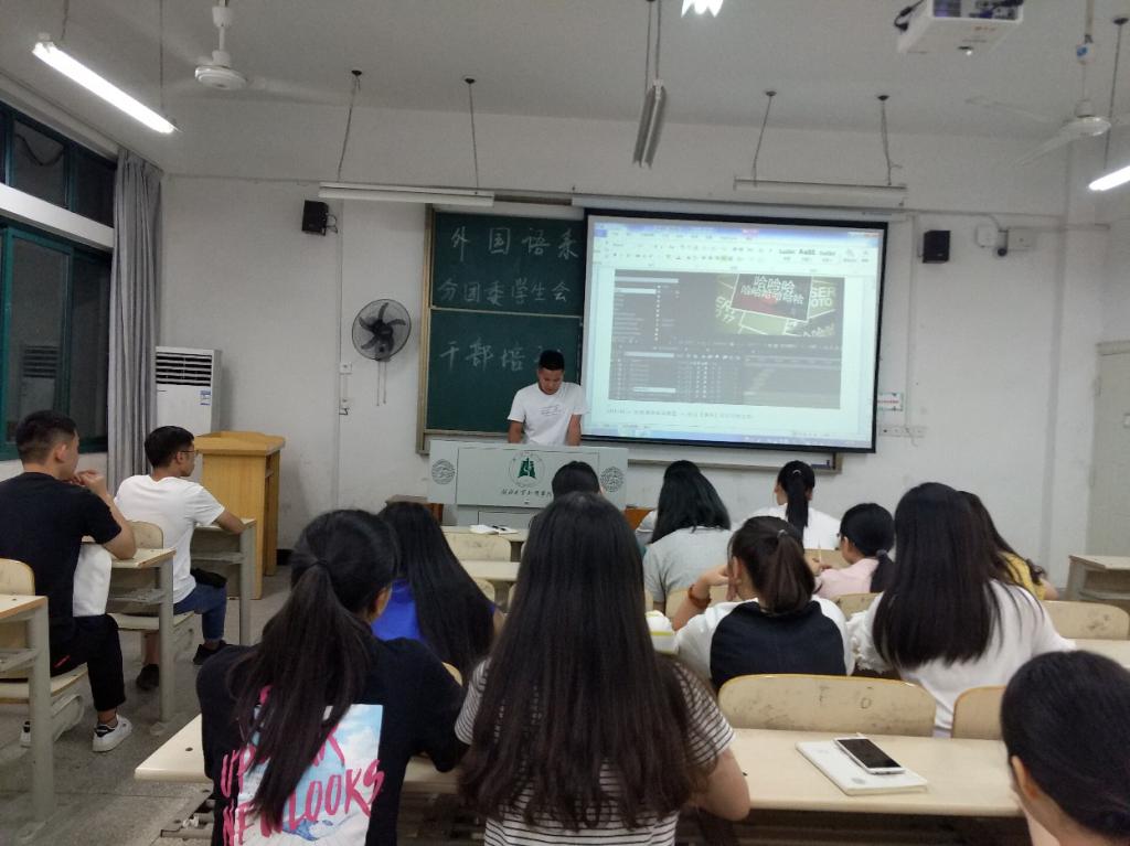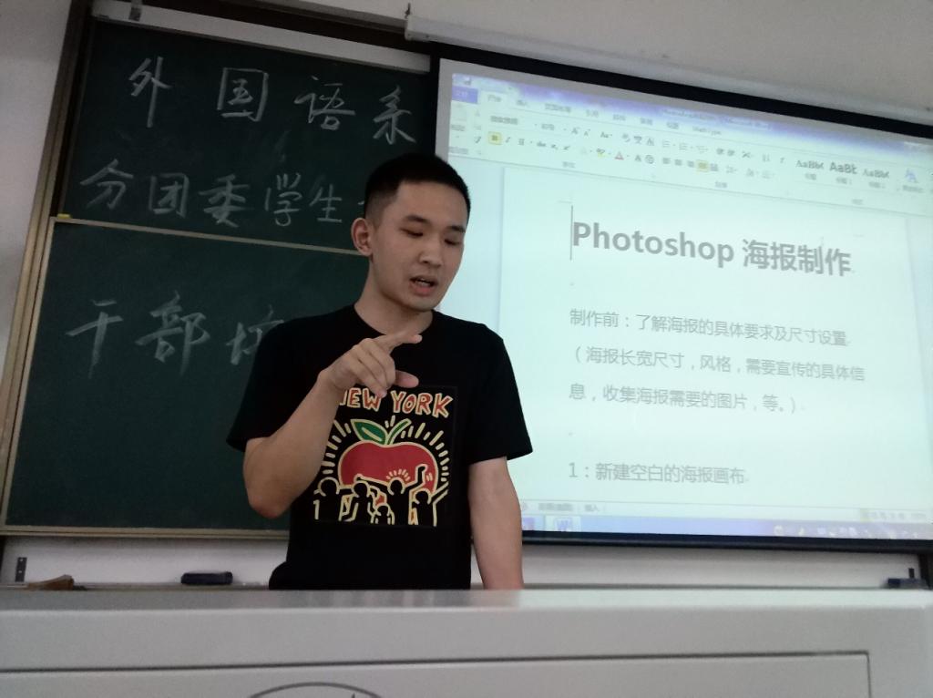 2018年9月5日晚18:30,由十三届宣传部部长黄奕辉、副部长周聪盛同学主讲的学生干部新媒体运用专题培训大会在四教402举行。外国语系分团委全体学生干部参加了本次培训。