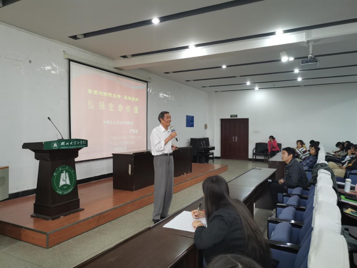 在活动开始时,陈书记发言表示对专家的欢迎,并强调此次讲座的重要性。接着心理专家开始了他精彩绝伦的讲座。严教授在讲座中的言辞幽默生动,将生活与案例紧紧联系。围绕“珍惜生命,弘扬生命价值”给同学们进行了深刻的讲解。