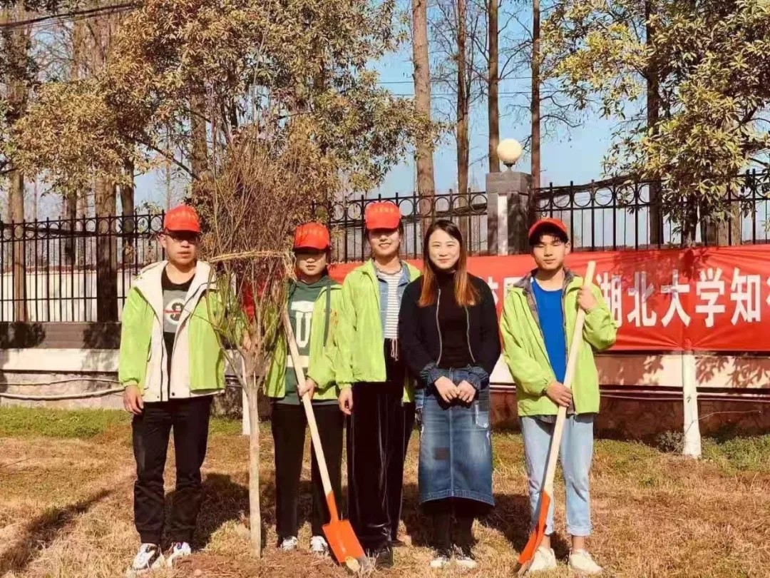 春风催新绿,涂泥吐芬芳。在第41个植树节来临之时,知行学院于3月12日上午在学院预留地开展了以“师生添抹绿,春意满校园”为主题的植树活动,外国语系傅丽副书记带领我系四名学生志愿者代表参加了此次活动。草长莺飞三月天,正是植树好时节。外语系师生热情高涨、干劲十足,大家挥锹铲土、放入树苗、填土压实,道道工序细致认真、有条不紊。树木种植完毕后,我系师生还在卡片上写上祝福语、签上名字,对树木进行正式“领养”。经过全院师生代表近两小时的忙碌劳动,近百株新栽的树苗迎风挺立,为春光明媚的三月增添了一抹盎然的绿意,成为知行一道亮丽的风景。本次植树活动在引导师生践行绿水青山就是金山银山理念的同时,进一步激发和引导学生的志愿服务精神,增强学生的社会责任感,培育学生的家国情怀。外语系参与植树的毕晨明同学在活动后表示:“这是我第一次和老师们一起动手植树,亲自参与到美丽的校园建设让我感觉即兴奋又自豪。希望以后有更多这样的机会和身边的同学一起参与环保公益活动,并从中体会到不一样的乐趣。”