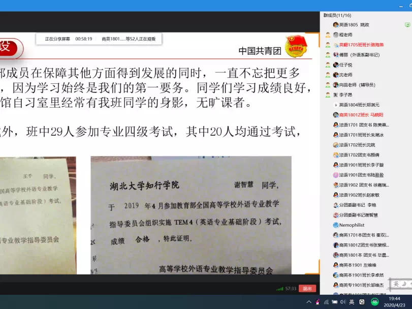 2020年7月20日晚7点,yl7703永利集团利用QQ群举办了2020年度“活力团支部”线上评选答辩会,学院副书记傅丽老师、全体辅导员和各团支部团干部参加此次答辩会。