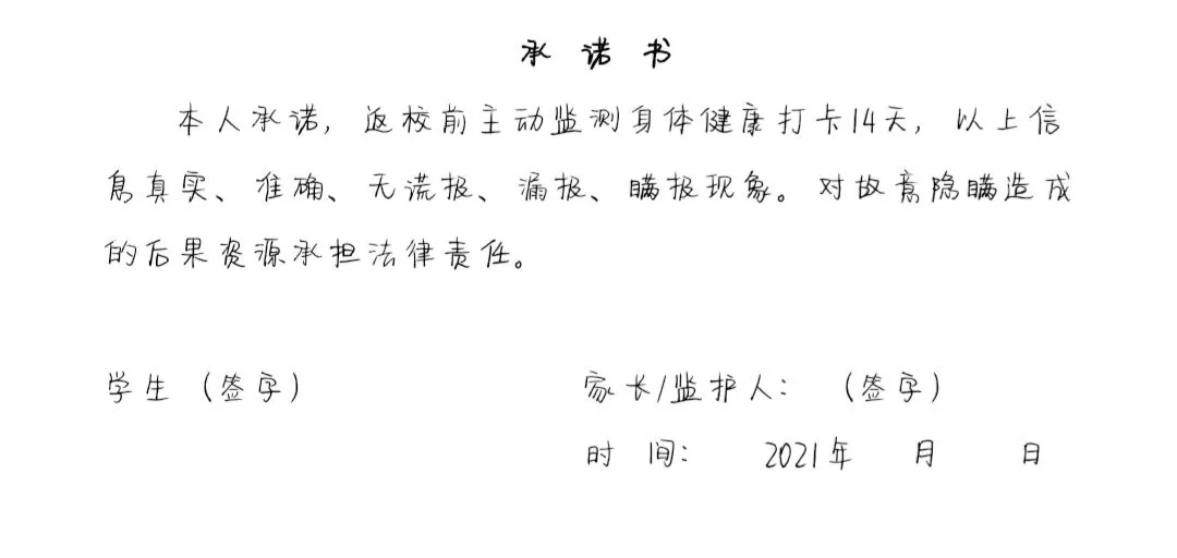 7. 开学前14天身体健康,无发热、胸闷、乏力、干咳等症状,并持有健康“绿码”。