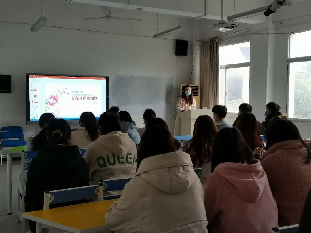 黄小雨老师的开学第一课“让花开的更灿烂”主要围绕大学生心理健康问题展开。针对日常生活、学习、处理人际关系以及与异性交往的过程中所遇到的问题,她做出了以下指导。第一,同学们要学会更好的认识自己、了解他人,培养悦纳自我的态度,不断完善自我。第二,要学会调节自己的情绪,合理疏导不良情绪在挫折面前采取理智的应对方法,化消极因素为积极因素。第三,同学们要确立目标、规划未来、肩负重托、手握责任。第四,要加强与他人的交流,不仅能从他人身上吸取经验及教训,还能消除彼此间的误会矛盾等不安定因素。在新学期里,保持乐观自信的生活态度,做命运的主人,做生活的强者!