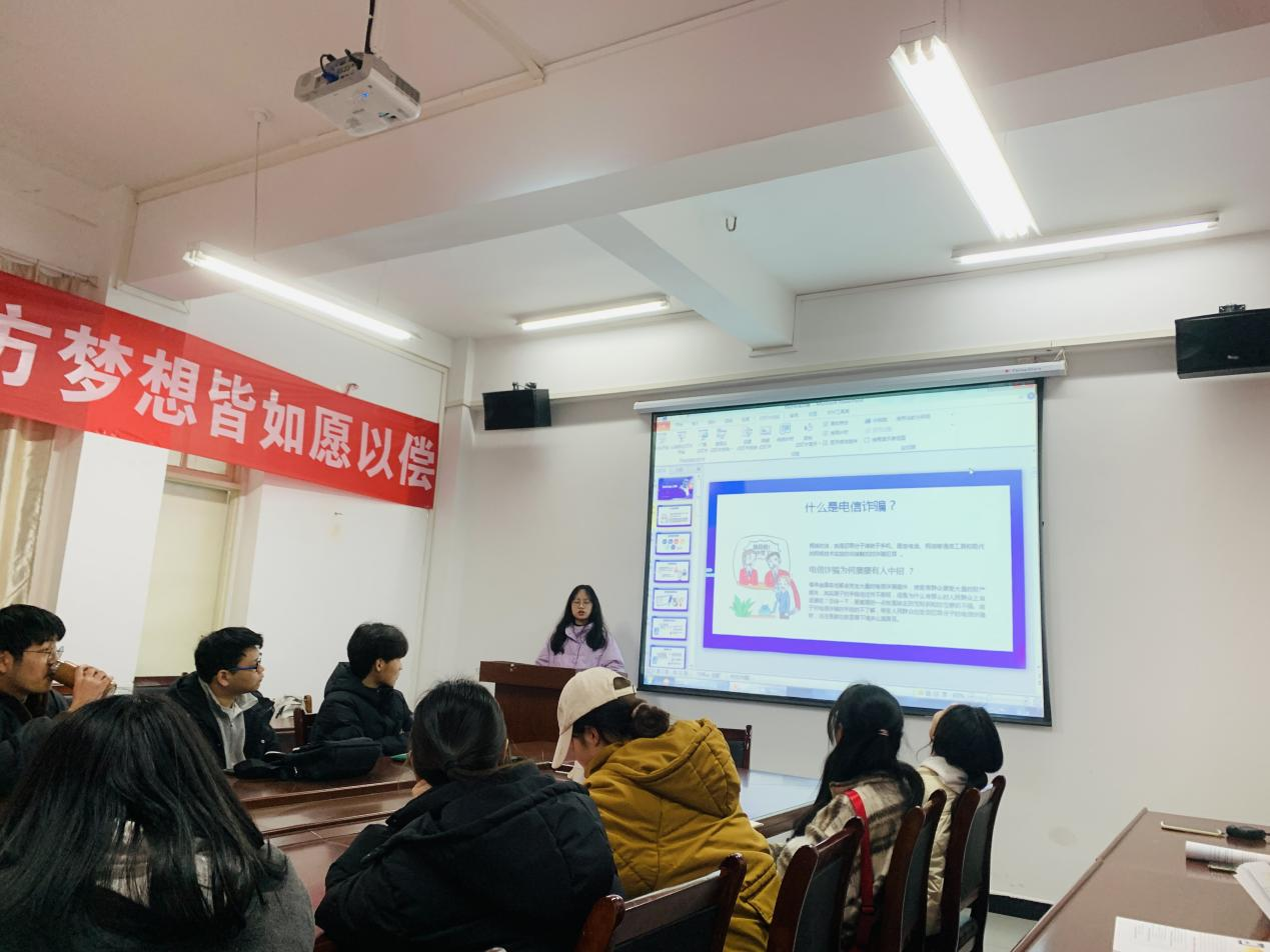 程老师结合高校易发的典型案例分析电信诈骗犯罪分子的心理特征、诈骗手法和作案特点,提醒各位同学,提高防诈骗意识,守住自己的钱袋子,不要一时冲动或者是意识淡薄而使自己的钱财不翼而飞。同时,如受到诈骗,需要保持冷静,及时止损,不继续汇款。