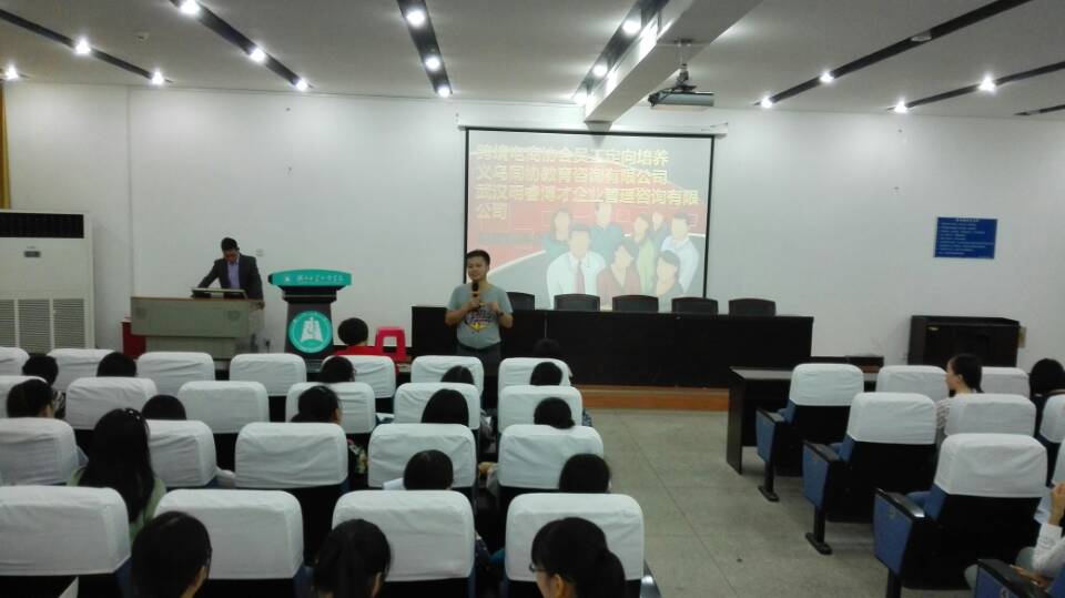 刘克书记在开场讲话中动员全体毕业班同学们积极了解就业市场的需求和国家经济形势,主动参加校内外招聘会了解用人单位的用人要求,希望同学们能够合理评价自我,制定科学的目标,多向老师、同学请教学习求职知识,并祝福大家都能找到心仪的工作。招聘会邀请义乌市跨境电商协会代表唐甄经理就跨境电商现状、未来发展趋势以及用人需求等各方面向参加的毕业生做了详细的讲解,并图文并茂的向大家展示了各个协会企业的工作生活环境,并就薪酬待遇等毕业生最关心的问题进行了答疑解惑。在招聘会结束后同学们纷纷主动向唐甄经理咨询相关事宜,并递交了简历。鉴于同学们的参与积极性和热情,唐甄经理承诺将会对递交简历的同学在接下来的两周进行针对性的培训,并在11月初组织协会企业直接来校和同学们进行面对面的交流并举行双选会。