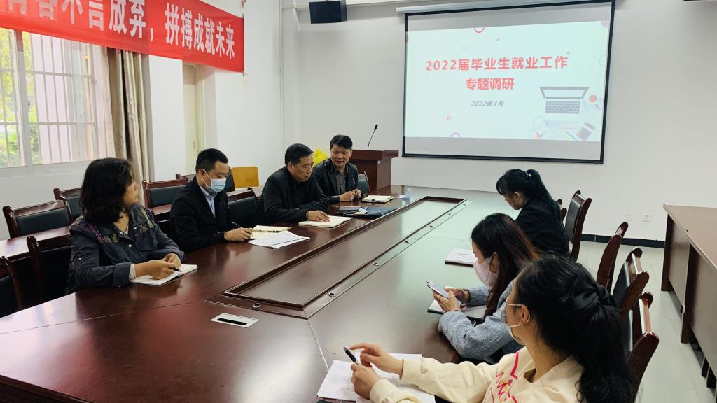 4月12日,副校长王文凯、招就处副处长胡显署一行来外语学院调研就业工作,学院班子成员、毕业班辅导员参加座谈会。