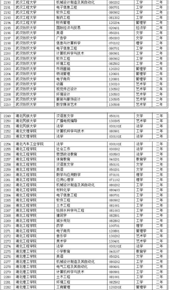 湖北共有23所高校可招收第二学士学位,涵盖190个专业。省内23所学校如下: