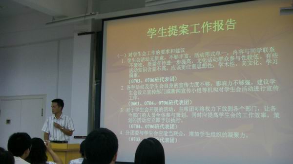 从这次学代会的筹备及召开工作上来看,整个筹备工作严格按照前期制订的筹备日程有条不紊的进行。学生会筹备各方按照筹委会按时按量要求完成了自己的任务,并有效地协助其他部门完成工作,反映了学生会各部门的团结协作精神。这是值得肯定的。但是,其中也暴露了许多问题。例如,时值第三届及第四届学生会干部及成员过渡交替时期,很多任务分配到个人时责任不明确,导致准备工作出现很多没有必要的延误。另外,在收集提案的工作中,很多学生提出的提案只是发泄自己的不满而并没有提出有效的建议,这也是今后组织大会时需要注意的部分。