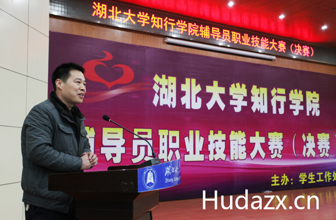 本网讯(通讯员陈飞雪 苟美硕)12月31日,由学工处主办的我院第一届辅导员职业技能大赛在行政楼201学术报告厅成功举办,院党委书记黄安全,院长刘刚,院党委副书记高志宏,副院长钟春敏、陈刚、黄智陵以及学院各职能部门负责人出席本次活动,全体辅导员以及各系学生代表参加本次活动。
