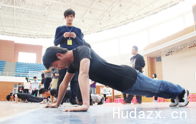 本网讯(通讯员董莹洁 付瑜琰)为了推进我院“一系一品”工程,丰富校园文化生活,促进师生精神文明建设。4月28日,学院首届俯卧撑大赛在艺体中心举行。