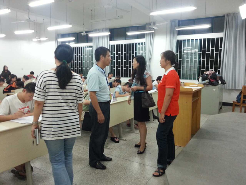 本网讯(通讯员 林名仲) 9月15日晚6点30分,为选拔优秀学生参加由外语教学与研究出版社联合教育部高等学校大学外语教学指导委员会和教育部高等学校英语专业教学指导分委员会主办的2014年“外研社杯”全国英语写作比赛,由院大学外语专业指导委员会主办,外国语系承办的2014年“外研社”杯全国英语写作大赛初赛在知新楼举行,钟春敏副院长,教务处胡楚处长、基础课部主任杨旭等领导在外国语系冯健主任陪同下对竞赛进行了巡视指导。