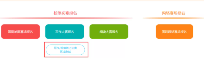 测试内容:检测选手账号能否正常登录,报名按钮是否为“写作/阅读大赛已报名”状态,网络是否正常,浏览器能否正常作答,赛题内容能否正常加载等。