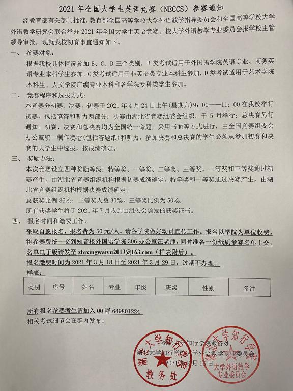 2021年全国大学生英语竞赛(NECCS)参赛通知