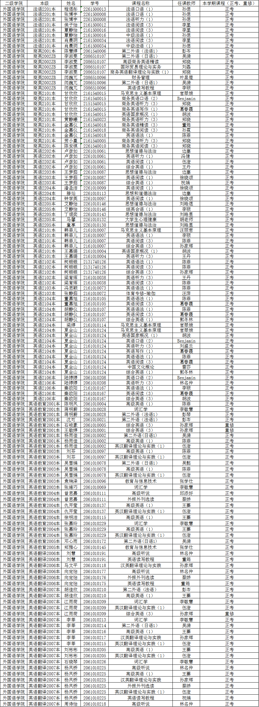 全院各班级:
