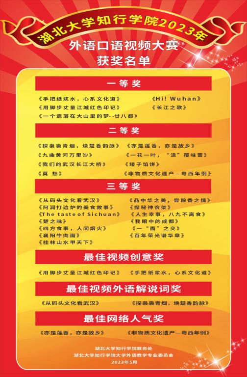 2023年yl7703永利集团外语口语视频大赛获奖名单