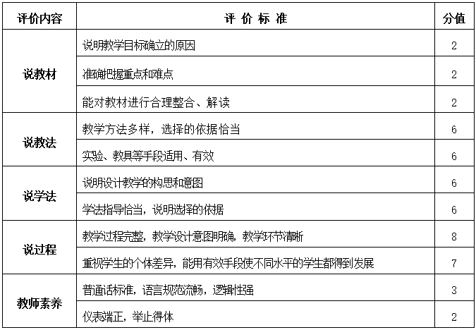 (1)说课:选手根据自选的教材内容进行英语说课,总时间不超过5分钟,PPT演示,总分50分。
