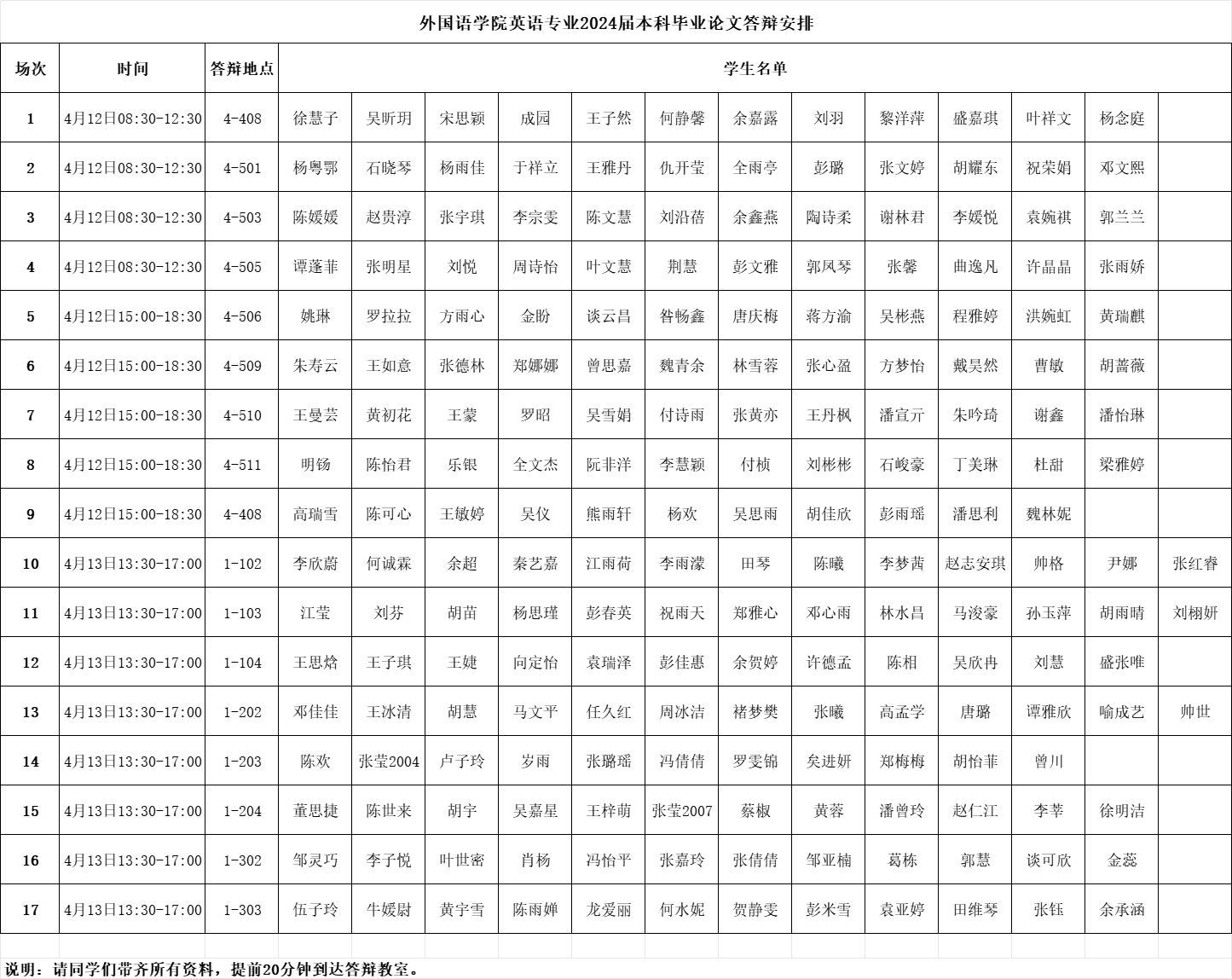 yl7703永利集团英语专业2024届一次答辩分组名单