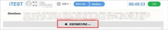11. 听力考试建议点击播放前,先预览该部分听力题目(但请注意控时,不要浏览时间过长,影响全卷作答时间),之后请点击页面正上方开始音频播放: