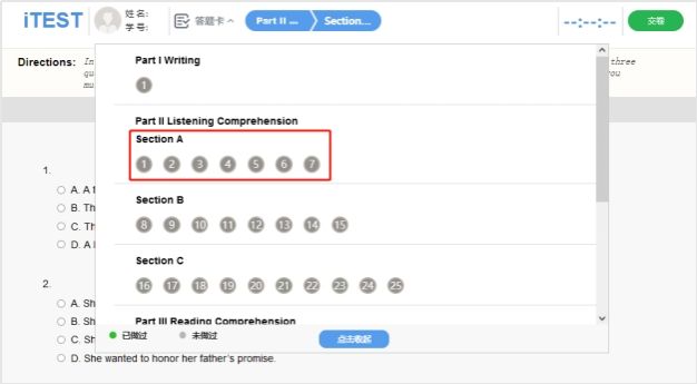 ***题组内音频自动连播,同时自动跳转对应题目。同题组半自动播放的过程中无法暂停,也无法点击下一题。