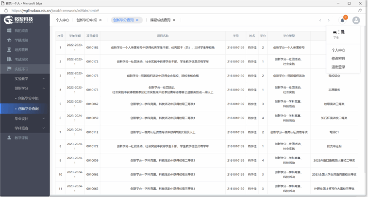 3、创新学分:截图如下 ,右上角:必须有姓名