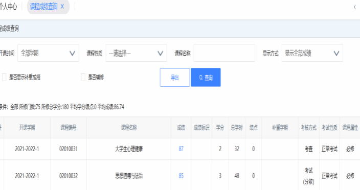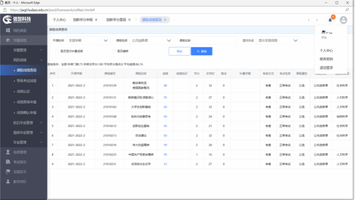 创新学分、创业学分、公选课学分、学位课程成绩、补考记录均可在强智教务系统查询,以下为查询方法: