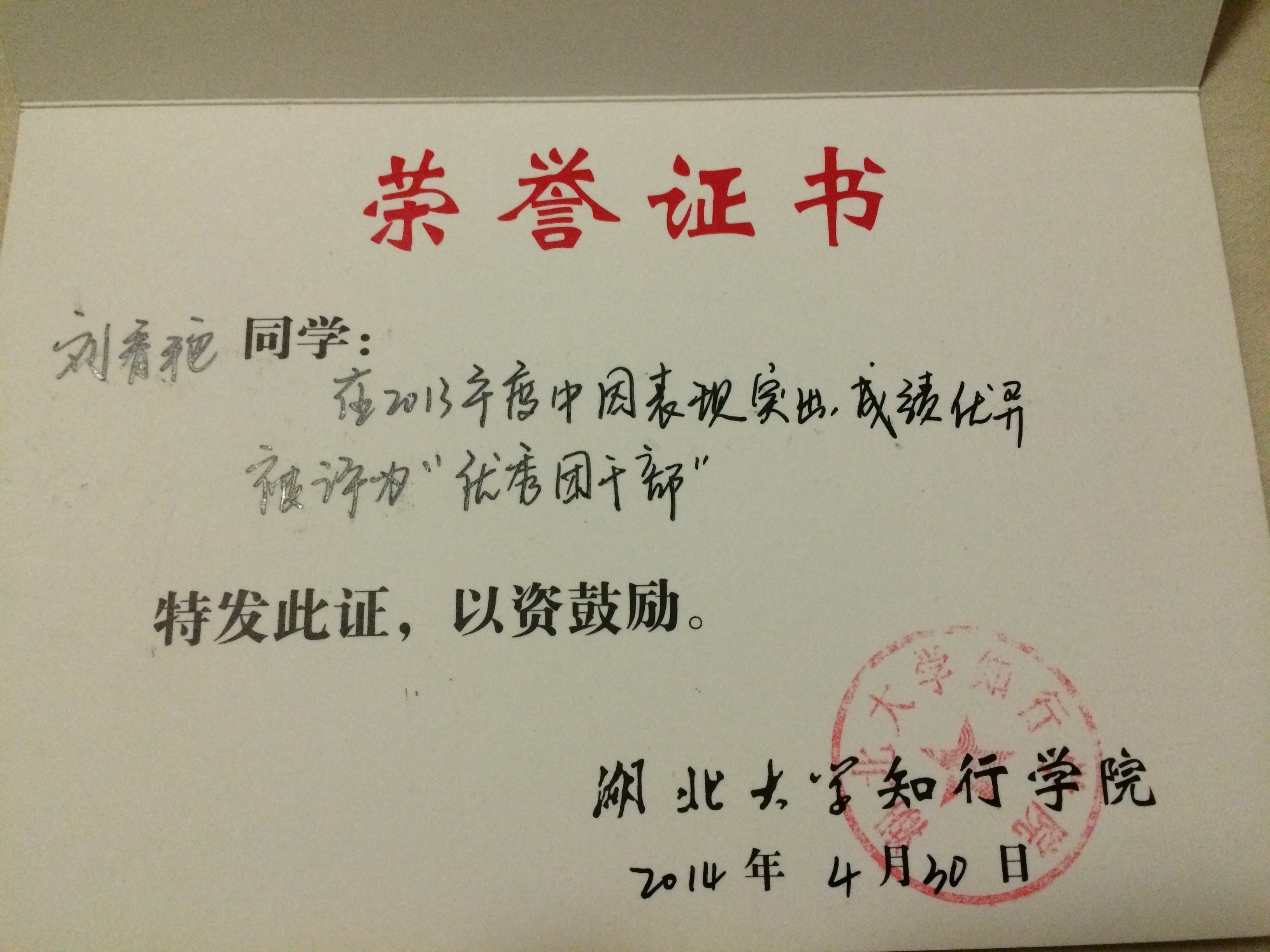 “我觉得我的大学生活充实、自由而快乐”。她说道:“大学就是一个培养人独立思考的地方,知道自己想要什么,想成为什么样的人。”在大三期间,她决定考研。她认为一个人该玩的时候就要尽情的享受,而改努力的时候就要踏踏实实的学习。漫漫考研路十分艰苦,下定了决心后,这一年间,她早出晚归,每天泡在图书馆,这期间,有很多同学都渐渐放弃了考研,她没有动摇,并最终考取了三峡大学研究生。与此同时,在考研备考期间,她也参加了国家汉办的“国际汉语教师志愿者”选拔考试,并顺利通过了考试。“那段时间很苦,汉办要培训,每天上课从早上到晚,还有作业,同时又要准备考研复试,论文答辩。”不过往往最艰苦的日子恰恰是对人历练的最好时机。她说,从来没想过自己在这么高压的情况下能完成这么多事,不过熬过了之后,便是收获的喜悦。”在培训期间,许多知名的教授学者给我们讲课,第一次上台演讲,上台录像讲课,遇到了来自五湖四海的优秀的同学,这些丰富精彩的经历,将永生难忘。”度过了那段难熬的日子,她所有的努力都结出了胜利的果实。论文答辩通过,考研录取,而在今年的5月,她也将踏上泰国,成为一名汉语教师志愿者。