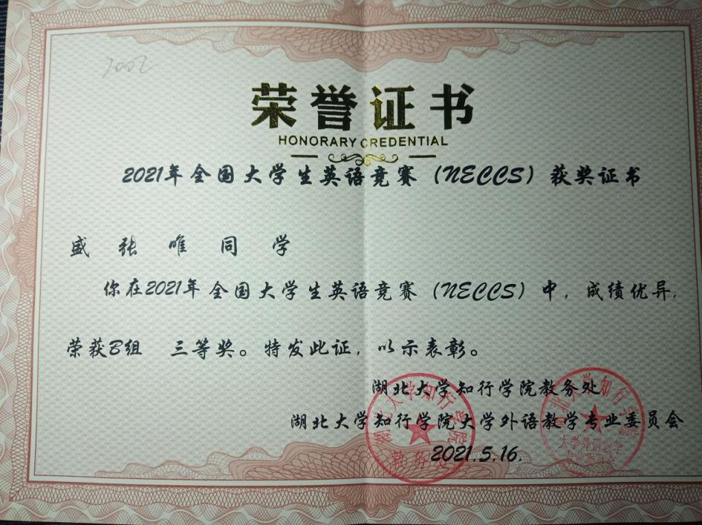 国家励志奖学金获得者——盛张唯
