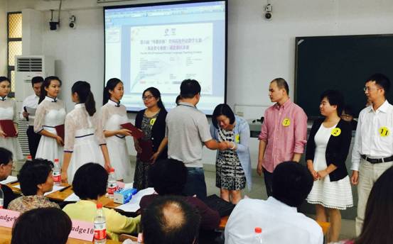 (本网讯 林名仲 )金秋送爽,丹桂飘香,9月19日外国语系胡波老师代表我院,在由湖北省教育厅、湖北省高等教育学会大学外语教学专业委员和上海外语教育出版社联合主办的第六届“外教社杯”全国高校外语教学大赛湖北赛区决赛中,取得了湖北省商务英语组三等奖的好成绩。本次比赛有来自全省40所高校共56名教师报名参加,代表着湖北省商务英语教学的最高水平。湖北赛区的比赛从2015年6月启动,经历初赛,复赛的过程。在学院领导和全系师生的支持和鼓励下,胡波老师顺利的进入复赛,取得名次,展现了学院中青年教师的风采。