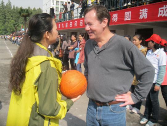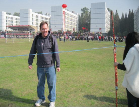 11月1日,阳光明媚,我院运动会如期召开。外教Brain身着一身运动装,参加学院运动会。