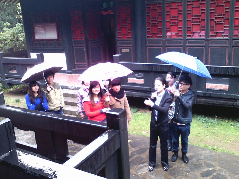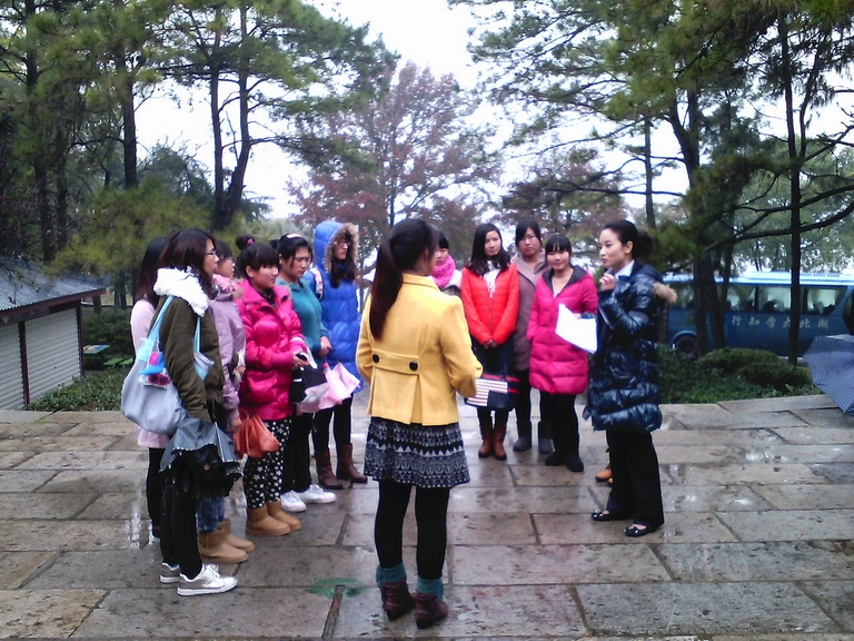 11月16日,在学院和外语系冯健主任的组织和安排下,外语系旅游英语1001班开展了一次课外教学实践活动。当天,由饶丽娜老师带队,1001班的全体同学在武汉市五星级导游陈佩学姐引导下参观了楚河汉街、东湖、省博物馆等武汉市著名的旅游景点。虽然当天下着小雨,但是丝毫没有影响同学们对这次微电影之行兴致高昂的心情。担任这次拍摄的女主角陈佩学姐是一名出色的五星级导游,在她那精彩、生动的讲解下,同学们对这些景点有了深入的了解。更重要的是,同学们利用这次微电影之行不仅向陈佩学姐学到了现场导游的宝贵经验,也对即将到来的导游证考试中所涉及到的知识点也学到了很多,大大增添了同学们的信心。虽然在这次拍摄中担任的只是微电影中的群众演员,但是同学们十分珍惜这次机会,也非常积极的配合导演的拍摄。最后,1001班的全体同学们感谢学院和学院领导能够给予我们这一次这么难得的学习机会,今后我们会更加努力学习,来回报学校和老师们辛勤的培育之恩。
