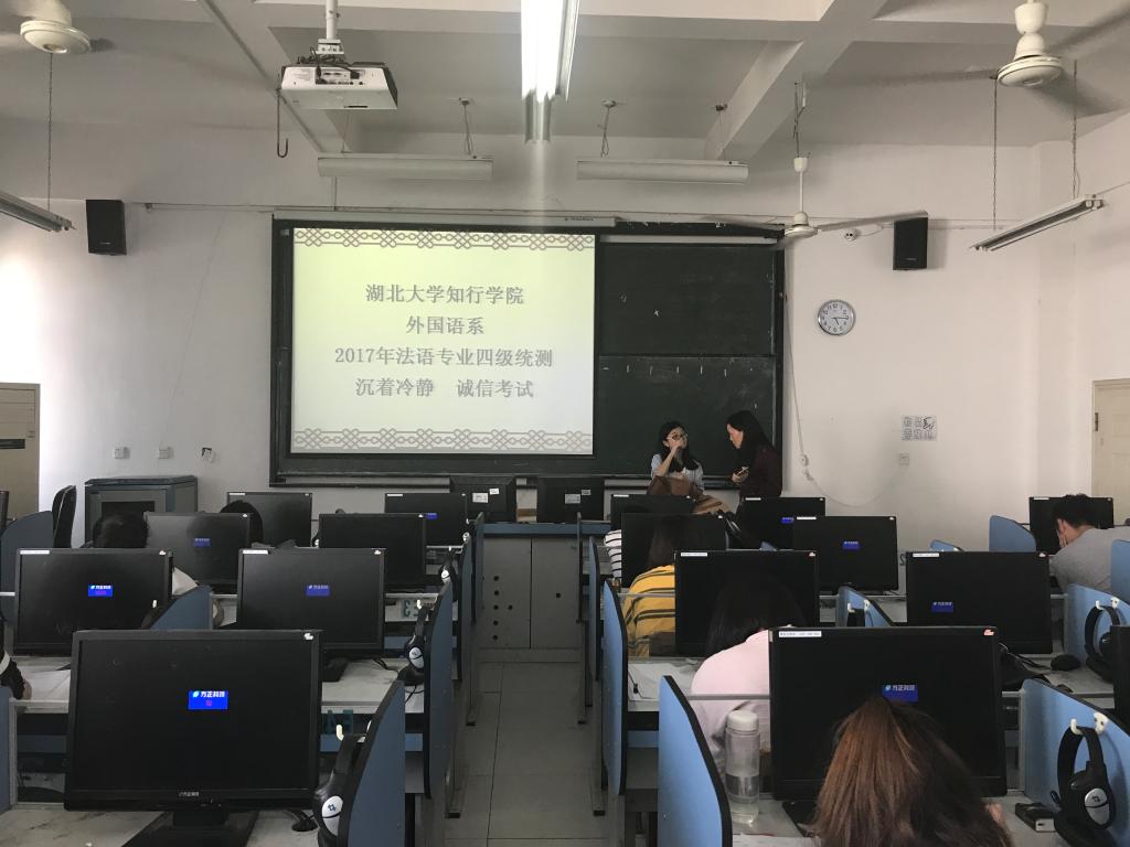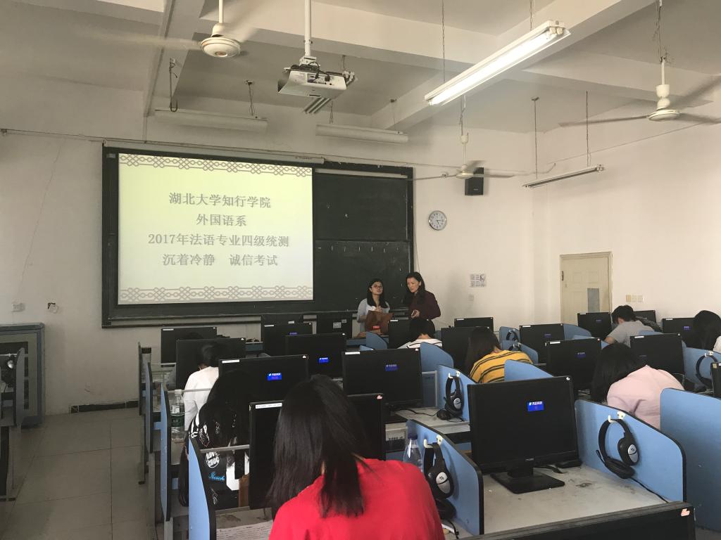 5月26日上午,全国法语专业四级考试在我校考点知真楼语音室306、307顺利举行。本次考试对象是是法语专业2015级和2014级法语专业补考学生,共39人,考试进程中副院长钟春敏、外国语系主任冯健深入考场检查考试工作。