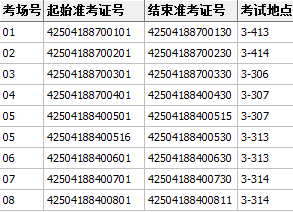 第八考场3-314 42504188400801-42504188400811