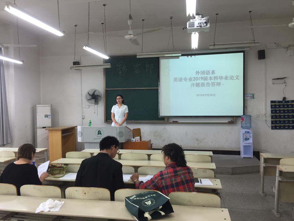 根据教学工作安排,外国语系于9月26日中午举行了2019届英语专业本科毕业论文开题报告会。