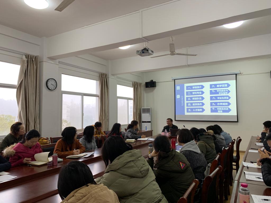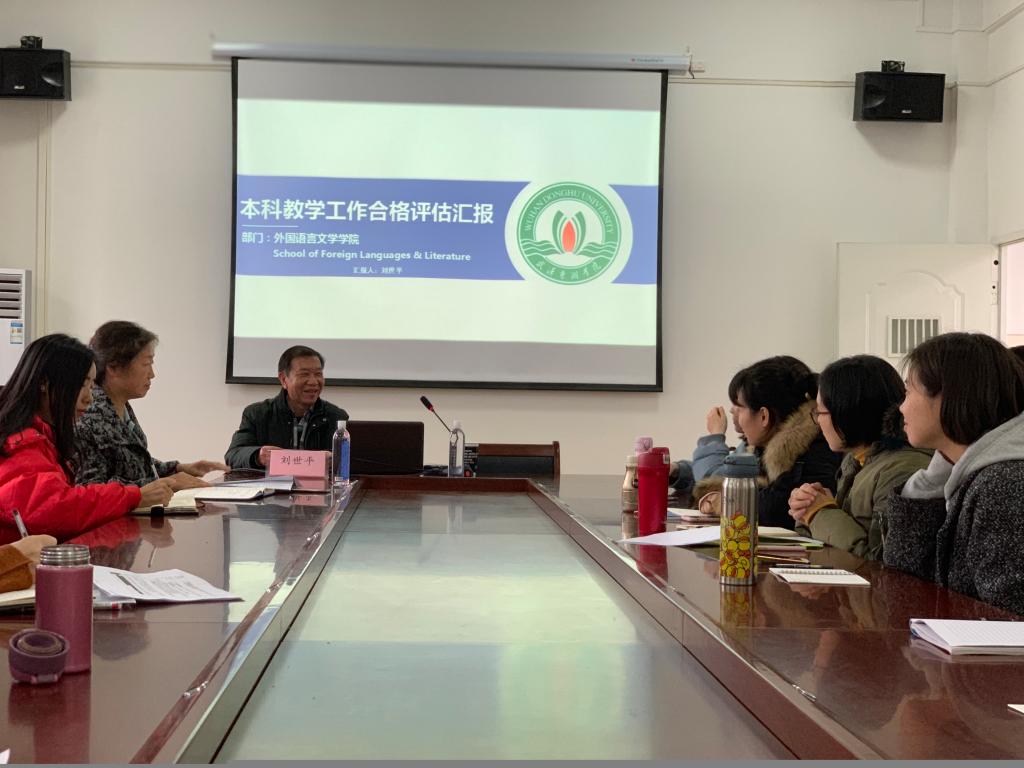 近日,武汉大学教授、武汉东湖学院外语学院刘世平院长莅临我系为全系教师带来《本科教学工作合格评估和科研项目申报》专题讲座,报告会由外国语系冯主任主持,外国语系全体教师到会参加。