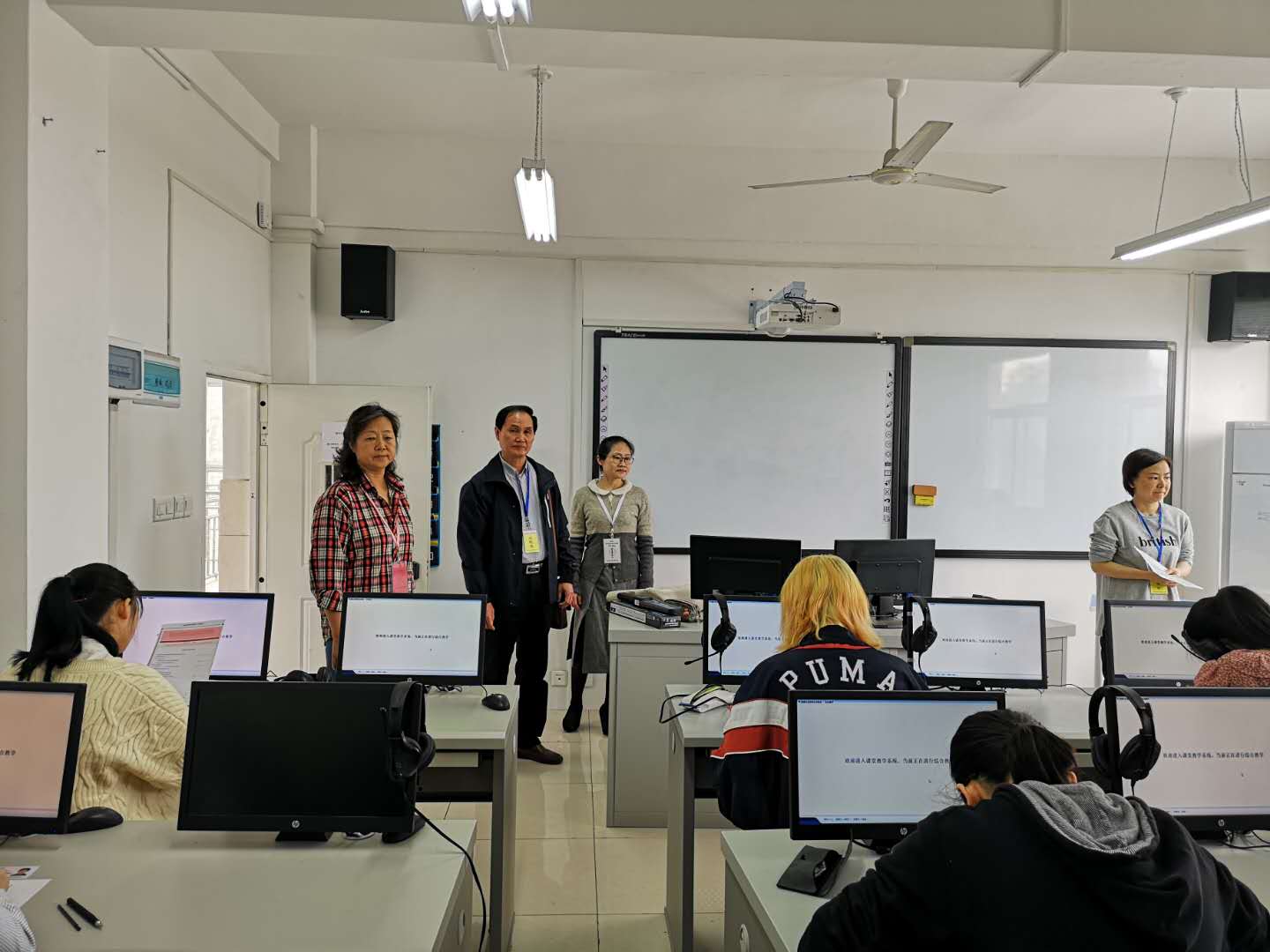 4月20日上午7:30,本校统测工作开始启动,教育部考试中心纪律监督员和全国英语专业统测巡视员到本考点对考务全程工作进行了督导巡视,全程参与考试监督。在整个专四统测过程中,本考点试卷的保管、运输、启封、以及考后试卷的封装、邮寄等相关程序均严格按照高校外语专业教学测试办公室的要求进行。纪律监督员对统测当日考前试卷的密封情况,考中考场内的统测实施情况及考后的试卷封装情况以拍照方式进行全程记录;统测巡视员张维友教授在考点主考yl7703永利集团冯健院长陪同下,对考试全程进行了巡视,对考试组织提出了肯定。