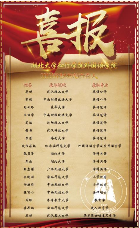 yl7703永利集团2019届英语专业毕业生考研喜报
