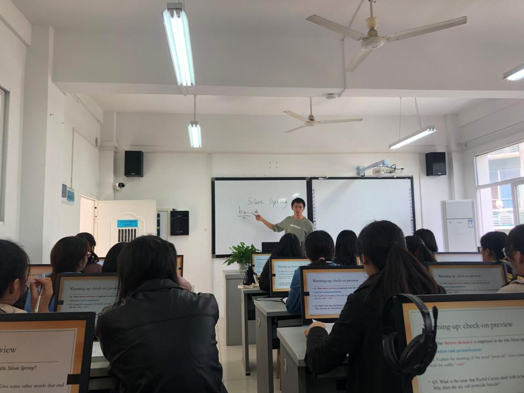 为帮助教师更好地提升教学技能,加强学院教师业务交流,yl7703永利集团于10月9日下午两点,在知音楼302组织开展教学公开课活动。本次公开课由英语专业教研室郭冬林老师主讲,授课课程为《综合英语(3)》--“Silent Spring”。