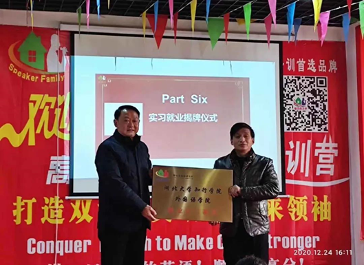 随后,卜诗桢校长与斯必克语言村负责人共同为校企共建实习基地授牌。授牌仪式上,校领导代表学校向企业对我校学生的关爱和培养表示感谢,希望双方能够继续深化、拓展合作领域,共同探讨更加符合现代企业发展的人才培养方案,建立校企合作的共融机制。