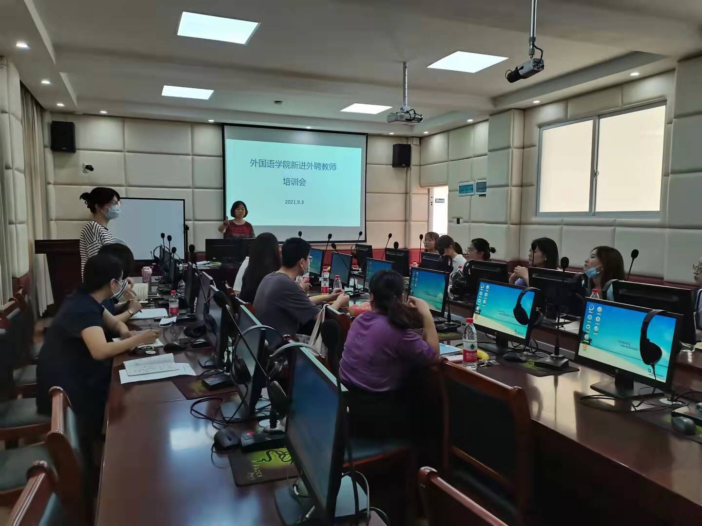 为使外聘教师熟悉学院教学管理规范和流程,帮助他们尽快适应教学节奏,确保课堂教学质量和水平,9月3日上午,学院在知音楼307组织开展了新学期外聘教师培训会。培训会由学院冯健院长主持,6位教研室主任参加,15位新进外聘教师到场参加培训,。