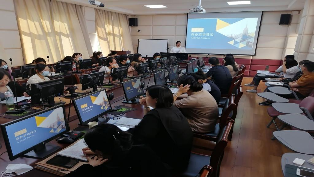 在现场研讨中,各位老师运用丰富的教学手段和技巧,结合对课程思政的理解,向全院老师展示了教学设计的思路。本次研讨会鼓励教师结合课程特色提炼育人因素,将思想政治教育和外语专业知识传授融合。