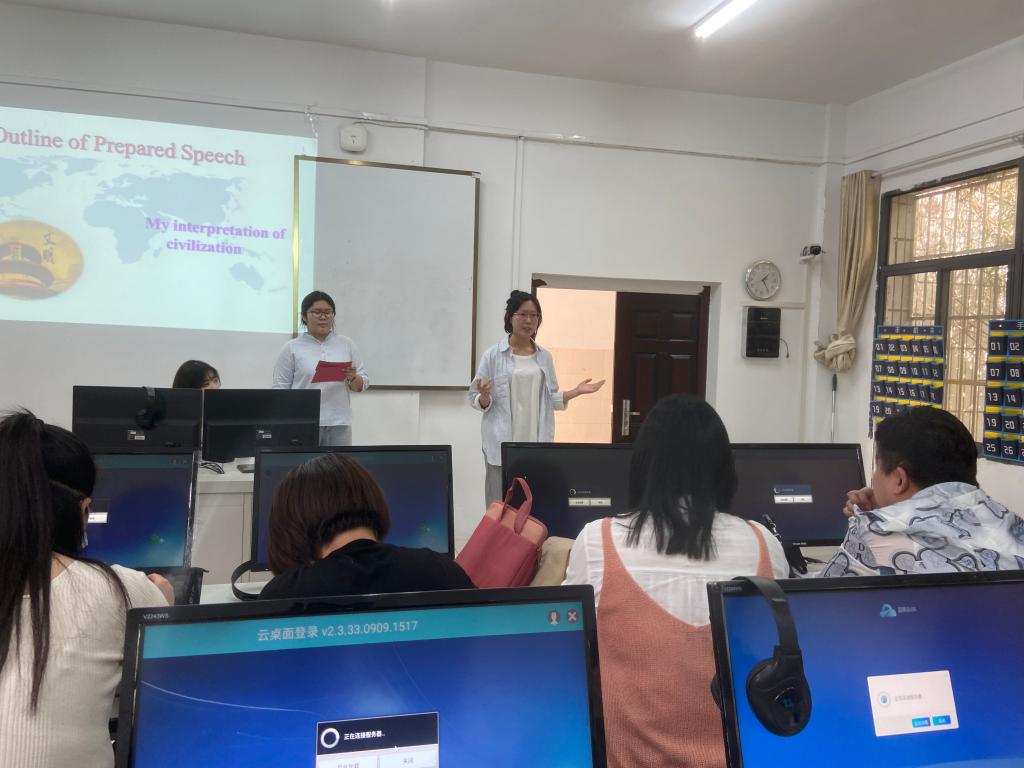 本届比赛定题演讲主题为“My interpretation of civilization”,参赛选手首先完成定题演讲核心要义概述,之后依次进行即兴抽题演讲和评委问答环节。经过两个小时的激烈比赛,英语专业2022级吴俊曦同学获得校园赛特等奖。他将代表我校参加“21世纪杯”全国英语演讲比赛湖北省决赛。