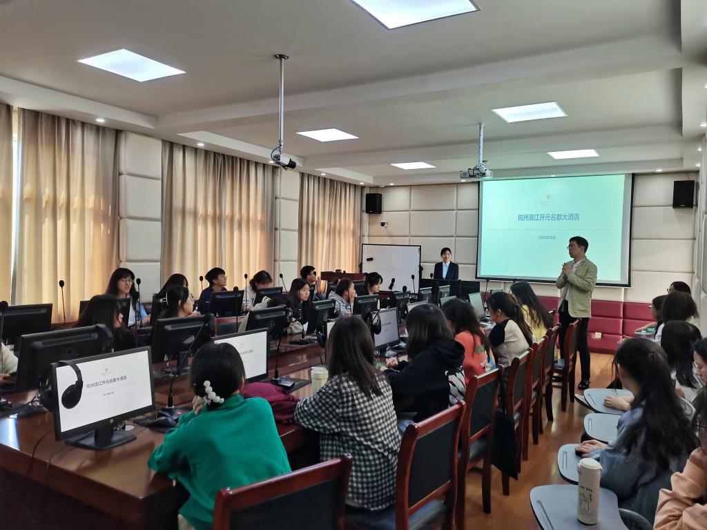 宣讲会上,孙小丹经理首先结合自身在酒店的实际工作经历,讲述了一路成为优秀人事部经理的道路,通过真实故事让同学们了解职位发展的可能性,并鼓励同学们要擅于利用自身英语技能,把握职场中的潜在机会,坚持用发展的眼光看待自己。