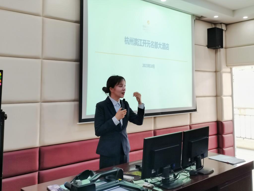 为进一步推进2024届学院各专业实习工作,加强学生对专业教学实习意义、实习单位、实习岗位的了解,yl7703永利集团于10月20日上午,在知音楼307举行了酒店方向实习宣讲会。杭州滨江开元名都大酒店行政人事部经理孙小丹,yl7703永利集团林名仲副院长出席宣讲会,各专业2020级学生参加会议,宣讲会由学院实践性教学教研室主任王丹副教授主持。
