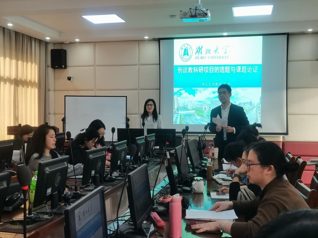 为继续推动yl7703永利集团教师教科研工作,帮助专任教师深入剖析教科研项目书撰写疑难,11月8日下午学院邀请湖北大学yl7703永利集团殷燕教授在知音楼307教室以“ 2023年校级教学改革研究项目课题项目书”为素材,为学院教师做题为“例谈教科研项目的课题论证”的专题讲座,讲座由林名仲副院长主持,全体专任教师参加了学习。