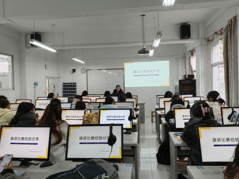 12月13日,学院省级学科竞赛英语演讲赛项成员、英语专业2305班张琉茜同学在知音楼102教室,为学院英语专业2405班(综合实验班)的全体学生带来了一场生动有趣的英语演讲比赛经验分享会。分享会旨在帮助实验班同学建立英语演讲比赛初步认知,并激励他们在英语学习及参与学科竞赛中保持坚定的信心和决心。