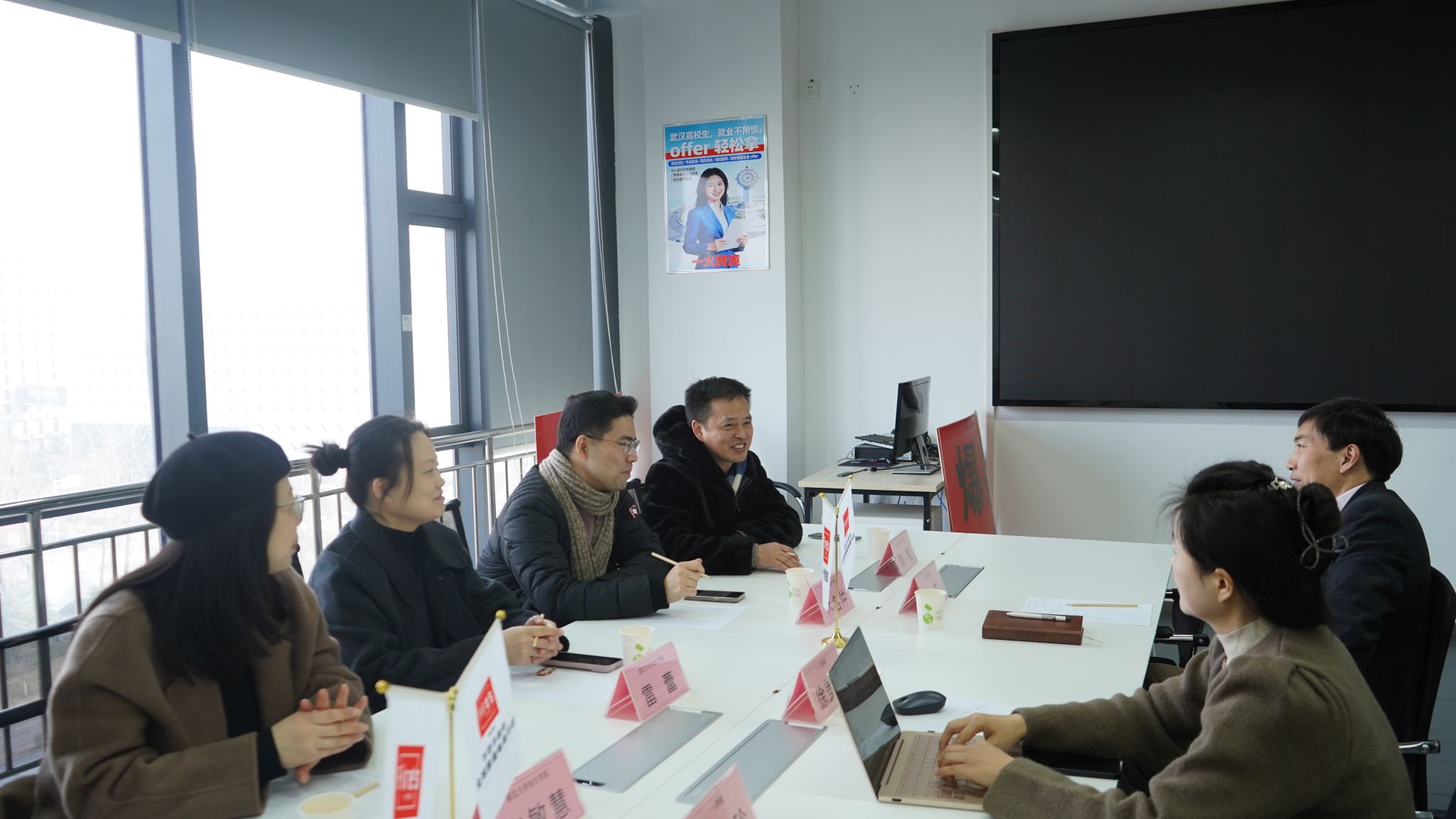 为深入贯彻落实学校关于2026届毕业生“寒假促就业暖心行动”的部署要求,务实推动校企深度融合,2月4日上午,yl7703永利集团领导班子一行前往武汉长江国际贸易集团有限公司及武汉一火跨境有限公司,开展访企拓岗专项调研活动。武汉长江国贸产业园负责人、一火跨境副总经理徐东,一火跨境高校事业部总经理徐美瑜接待了学院一行,双方就深化校企合作、创新人才培养模式及拓展实习就业平台等议题进行了深入探讨。