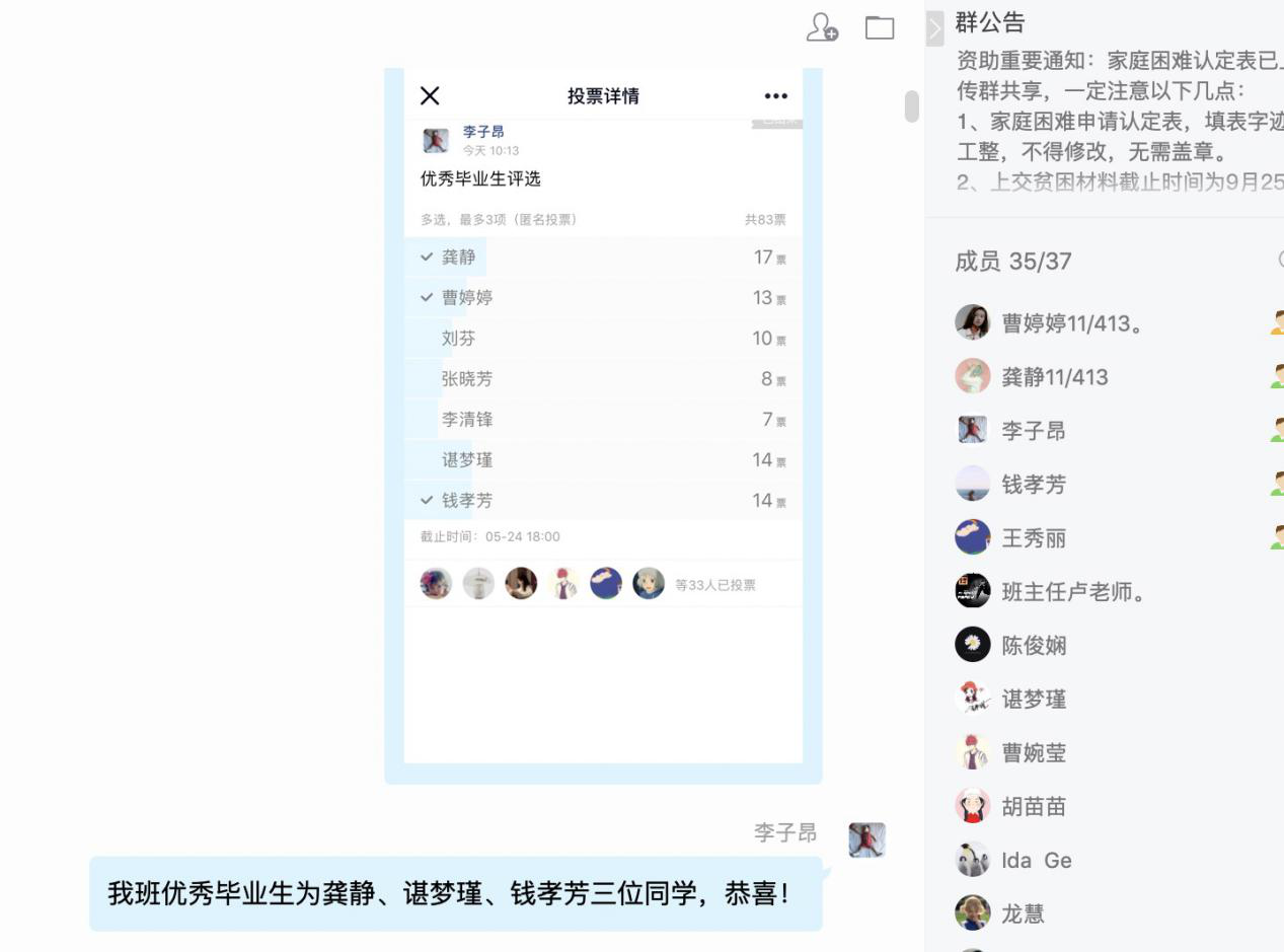 毕业季来临,本周yl7703永利集团毕业生班级辅导员召开线上优秀毕业生选拔大会,会上,辅导员按学校评选优秀毕业生的文件要求,根据学生在校四年的综合表现进行第一轮筛选,即综合考虑候选人的获奖情况、成绩排名、就业情况等,筛选出一批符合资格的学生名单。评选第二轮是班级采用民主投票,选出了大家心中的优秀毕业生。荣誉获得者名单在班级公示了三天,无异议后,辅导员提交最终确认名单到学院,顺利完成此次优秀毕业生评选工作。