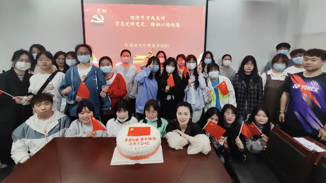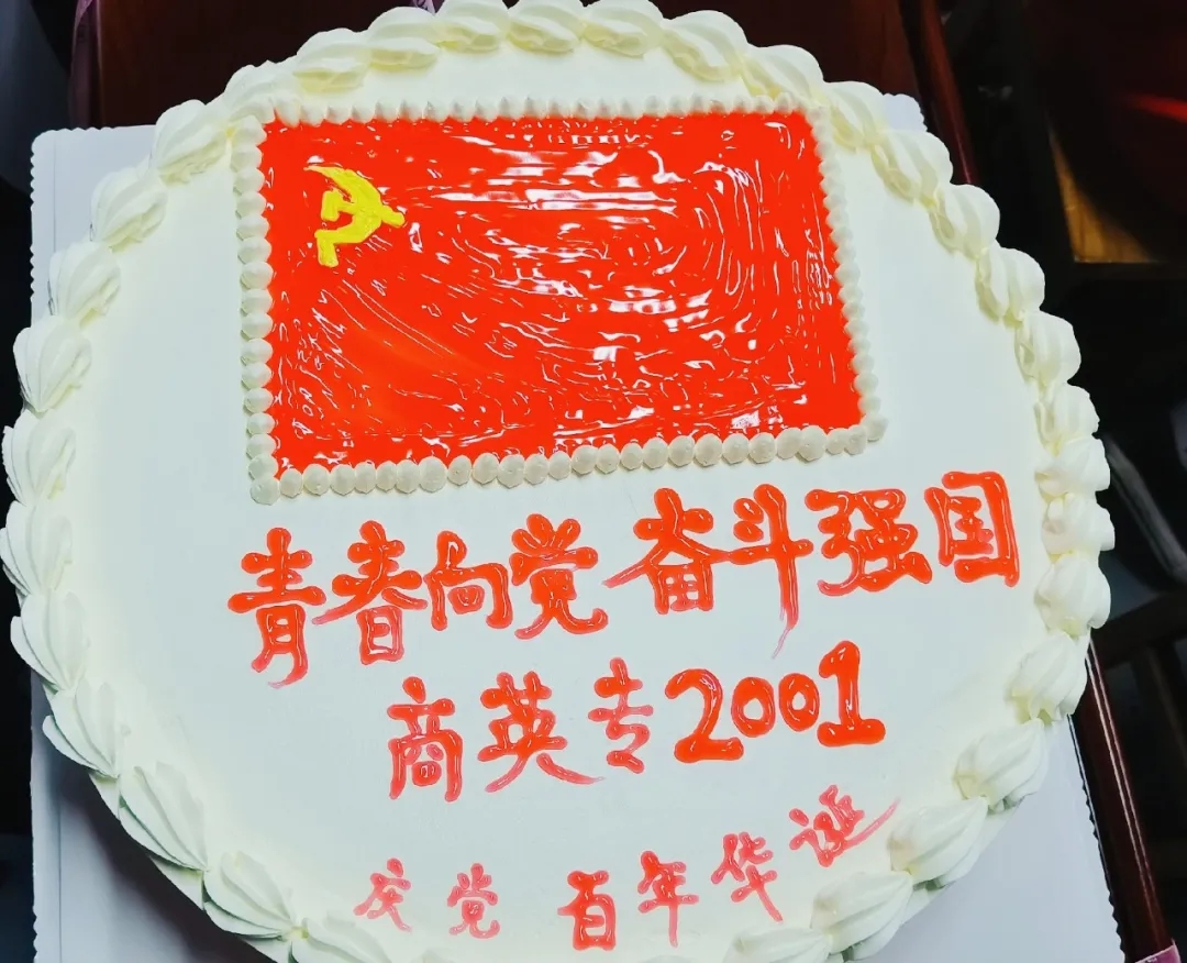 在这繁花似锦的四月,我们伟大的党迎来了她100周岁的华诞,这100年我们的党经历了无数的风风雨雨,今天商英专2001班的全体同学聚集在一起,通过忆党史学党史和分享蛋糕的形式,一起为我们的党送出最诚挚的祝福!