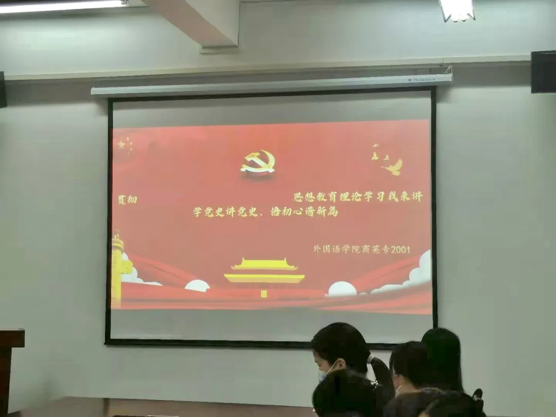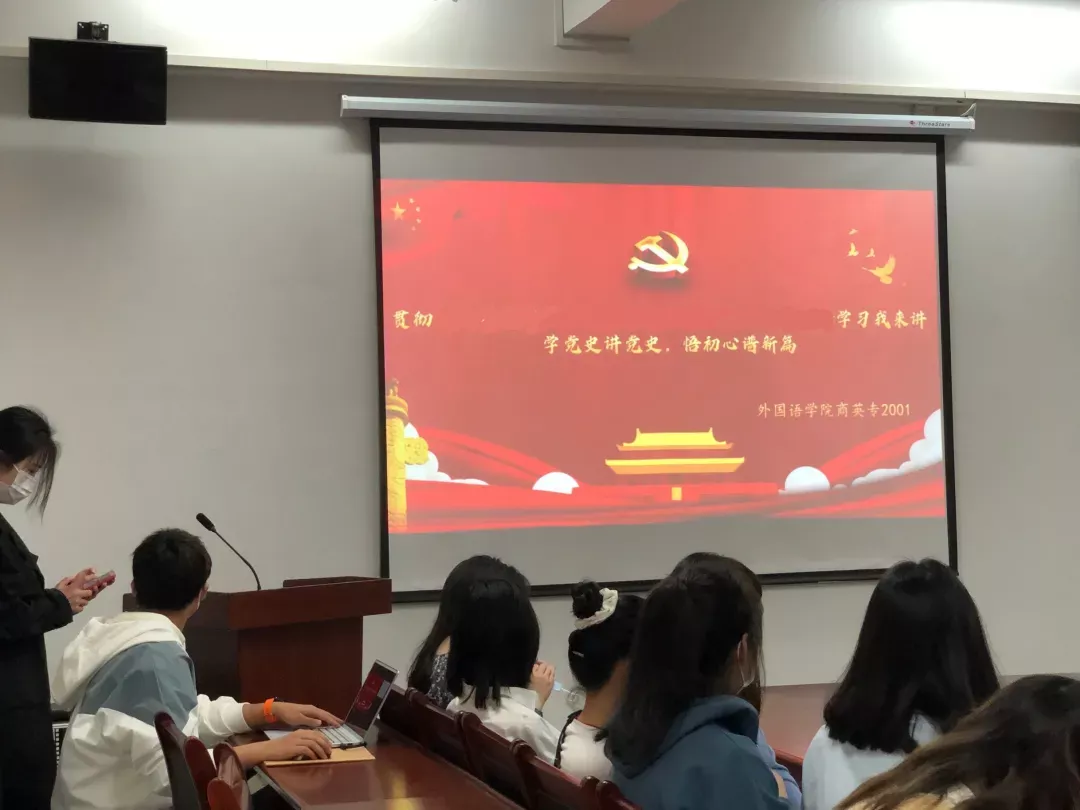 为明确青春作为、诠释青春担当、展现青春风采,达到深刻体会新时代教育目的,商英专2001班的同学们做出了充足的准备,将党史学习分成了五个环节进行展开。